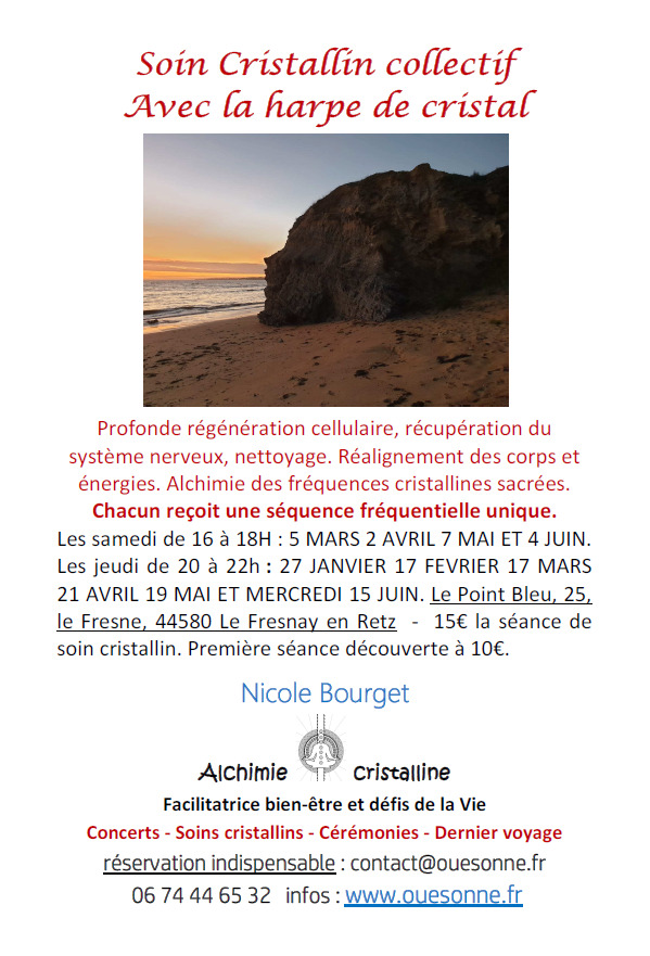 Soin avec harpe de cristalLes activités - Paru le 15 février 20222 avril 2022 par admin5425 Partagez Jeudi 21 Avril de 20h à 22h. Le Point Bleu Navigation de l’articleArticle précédent : Séance harpe de CristalArticle suivant : Conférence « S’aligner sur sa lignée »